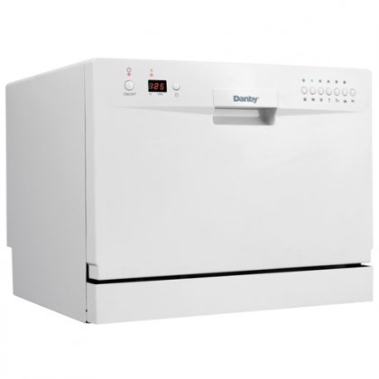 Keep your dishes clean with the Danby 6 Place Setting Energy Star Countertop Dishwasher DDW611WLED This small compact dishwasher can easily sit on the countertop without taking up too much space which is perfect for the overstocked and cluttered kitc...Check its out related products of 6-Place Settings Full Console Countertop Dishwasher Wash Cycles Convenient Automatic Detergent Rinse Agent Dispenser Energy Star Rated: White