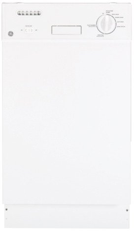 GE White Full Console 18 Inch Dishwasher GSM1800NWW. Can reduce utility bill by using less water to get dishes clean. A lustrous finish and lasting beauty that resists stains and corrosion. Blends almost seamlessly with adjacent cabinetry. Heavy-duty design secures and protects dishes during each cycle. Pulls out completely to allow for washing large items. Protects delicate glassware and dishes by lowering the water temperature during the cycle. Scours off burned-on food with hot water and maximum water pressure. Designed for easy access and operation. Approximate Shipping Weight: 100 lb. Height w/Legs Extended (in.): 35. Overall Depth: 22 1/2 in. Overall Height: 32 1/2 in. Overall Width: 18 in. Tub and Door Liner: Stainless Steel. Wash Levels: 4. Rinse Aid Dispenser: With Adjustment. Cycles: 7. Pots and Pans: Dial. Heavy Wash: Dial. Normal Wash: Dial. Light Wash: Dial. China/Crystal: Dial. Plate Warmer: Dial. Rinse Only: Dial. Options: 1. Heated Dry: Rocker. Racking (Upper/Lower): Nylon. Removable Upper Rack: Yes. Utility Shelves: Yes. Silverware Basket: Standard. Control Type: Turn-to-Start. cycle Progress Indicators: Dial. Hard Countertop Installation: N/A. 120 Degree F Inlet Water Capability: Yes. Leveling Screws: Yes. Calrod Heating Element: Yes. Covection Airflow: Yes. Tub Installation: Standard. Colors Available: BB (Black on Black); WW (White on White); SS (Stainless Steel). Requires Kit for 1/4 Panel Capability with Trim: GPF18W; GPF18B. Parts Warranty: Limited 1-year entire appliance. Labor Warranty: Limited 1-year entire appliance. Warranty Notes: For models produced on or after January 1, 2006; See written warranty for full details. GE Consumer & Industrial spans the globe as an industry leader in major appliance, lighting and integrated industrial equipment systems and services. They provide solutions for commercial, industrial and residential use in more than 100 countries which uses innovative technologies and ecomagination. It's a GE initiative to aCheck its out related products of GE White Full Console 18 Inch Dishwasher GSM1800NWW